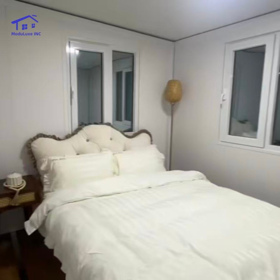บ้านคอนเทนเนอร์สำเร็จรูปขยายได้ขนาด 20 ฟุต 40 ฟุต สไตล์ร่วมสมัยหรูหรา 1-4 ห้องนอน บ้านเคลื่อนที่ขนาดเล็กสำหรับโรงแรมกลางแจ้ง