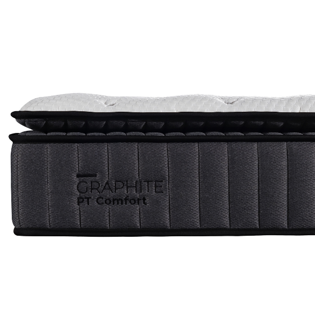ที่นอนไฮบริดกราไฟต์รุ่นใหม่สุดหรูหรา พร้อมท็อปเปอร์แบบ Pillow Top และ Pocket Spring บุด้วยโฟมนุ่มแบบ Quilted เพื่อการนอนหลับสบาย ลึกซึ้ง เหมาะสำหรับใช้ในบ้าน