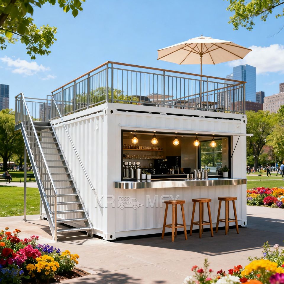 ร้านกาแฟเคลื่อนที่สุดหรูทันสมัยจากตู้คอนเทนเนอร์ ร้านน้ำผลไม้ บาร์ แข็งแรง ทนทาน โครงสร้างเหล็กหนา 3 มม. พื้นที่กว้างขวาง