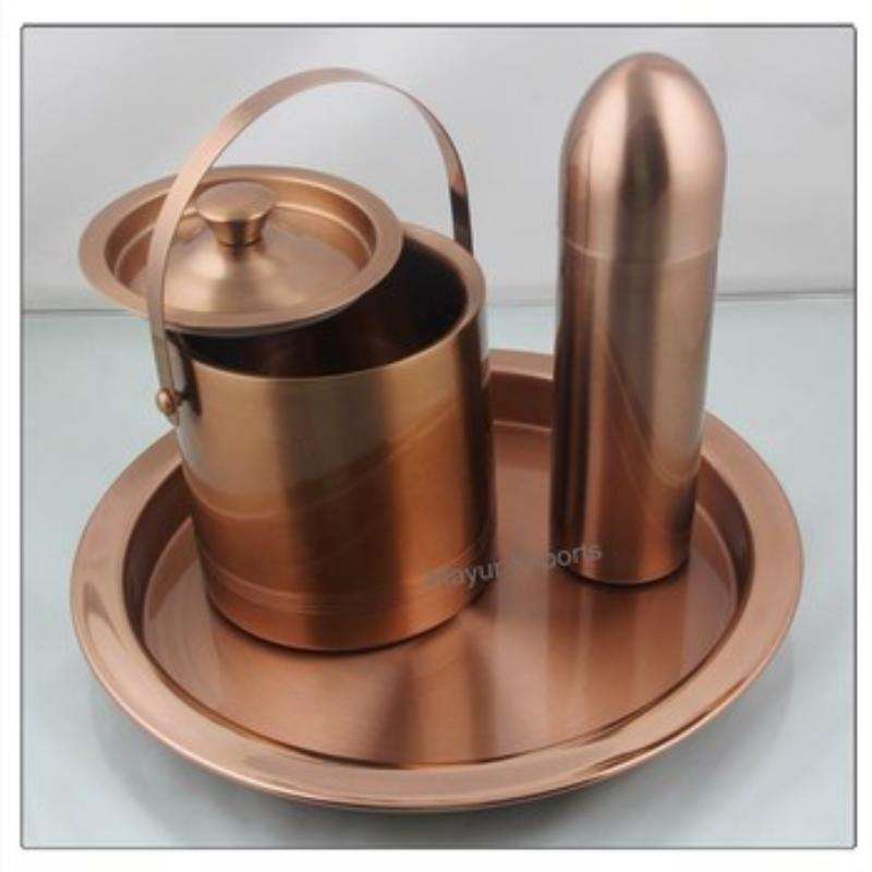 ชุดเชคเกอร์ค็อกเทลสแตนเลสสตีลชุบทองแดงหรูหราเป็นมิตรต่อสิ่งแวดล้อมชุดผสมอุปกรณ์เสริมสำหรับงานปาร์ตี้โรงแรมร้านอาหาร