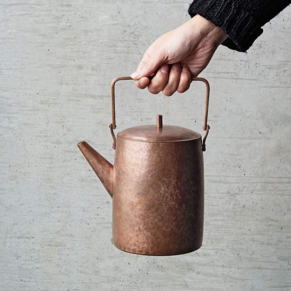 กาต้มน้ำทองแดงหรูหราพร้อมด้ามจับไม้เพื่อการเทที่ปลอดภัยและเหมาะสำหรับตกแต่งครัวบ้านระดับพรีเมียม