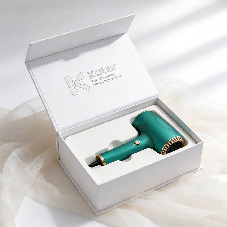 กล่องเครื่องสำอางสุดหรู กล่องผลิตภัณฑ์ความงาม ไดร์เป่าผมไฟฟ้า แว็กซ์เมลท์ กล่องของขวัญกระดาษแข็งแบบกำหนดเองพร้อมฝาปิดแม่เหล็กและช่องใส่ของ