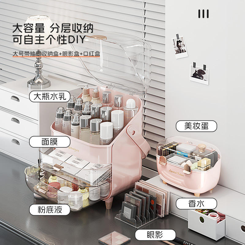 กล่องเก็บเครื่องสำอางสุดหรูพร้อมลิ้นชัก กล่องเก็บของกันฝุ่นความจุขนาดใหญ่สำหรับผลิตภัณฑ์ดูแลผิวหน้า