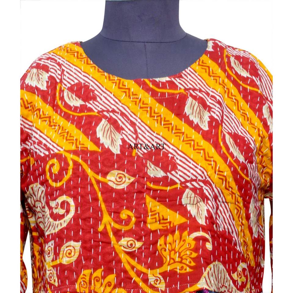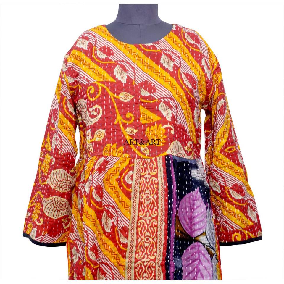 เดรสแม็กซี่ผ้าฝ้ายพิมพ์ลายคันธาสุดหรูสำหรับผู้หญิง แฟชั่นสำหรับงานปาร์ตี้ คอทรงโอ แขนพองสามส่วน สไตล์ผสมผสานแบบชาติพันธุ์ เหมาะสำหรับงานปาร์ตี้