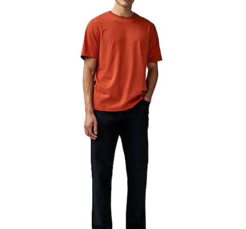เสื้อผ้าฝ้ายสุดหรูใส่สบายสไตล์สตรีทแวร์ลำลองคอกลมแขนสั้นสีส้มสำหรับการใช้งานกลางแจ้งชุดเล่นกีฬา