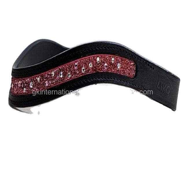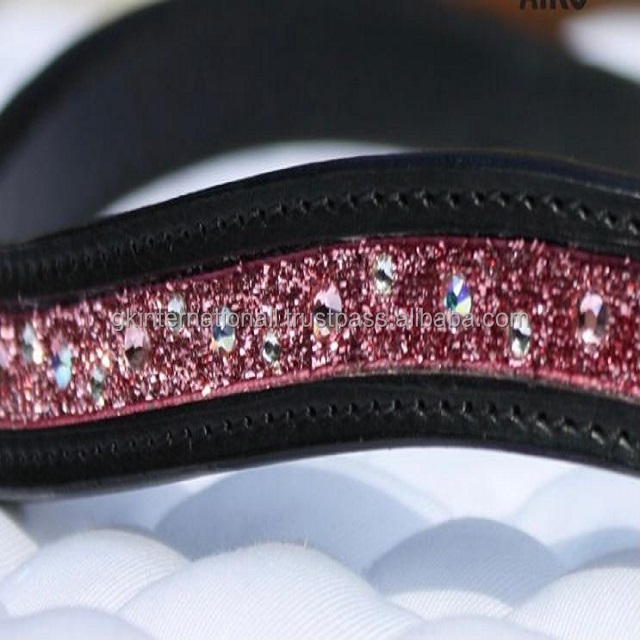 แถบคิ้วหนังวัวลายหนังม้าประกายฝังด้วยคริสตัลแบรนด์สายรัดคิ้วช่องเปล่าเย็บขอบ