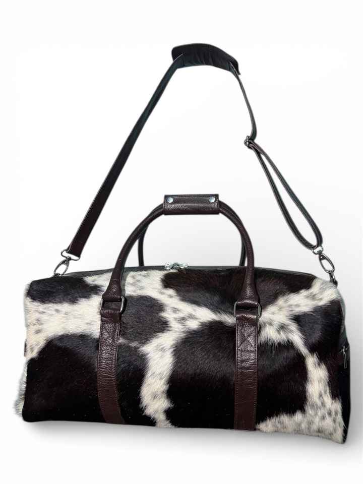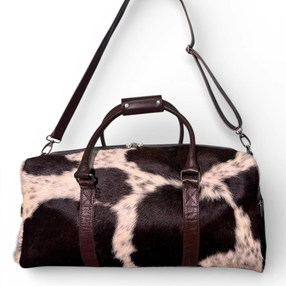 Luxury Cowhide Hair on Leather Fashion Duffel Travel Bag Large Vintage Weekend Carry on Zipper Closure LHODB-0121