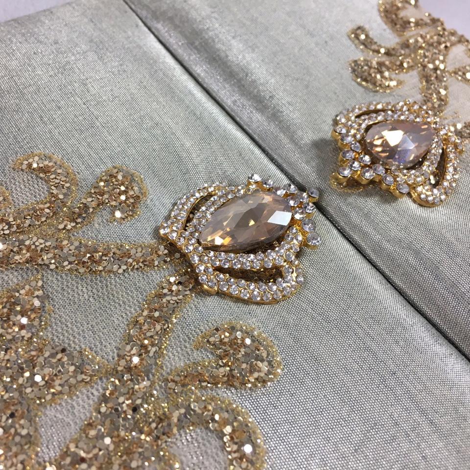ชื่อ:กล่องแต่งงานทำจากผ้าไหมและลูกไม้สีงาช้างหรูหรา