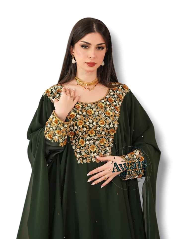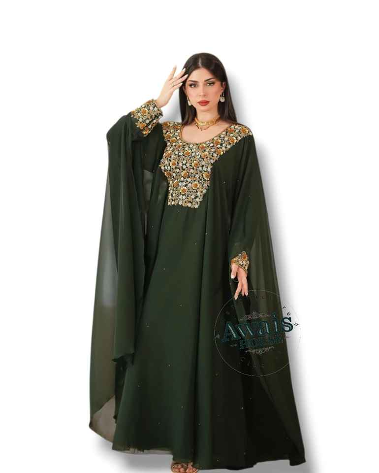 ชุดเดรสยาวแบบคาฟตันสไตล์ดูไบ ปักคริสตัลหรูหรา งานฝีมือประณีต แต่งลูกปัด ดีไซน์เรียบร้อย สไตล์แอฟริกัน ตะวันออกกลาง อิสลาม