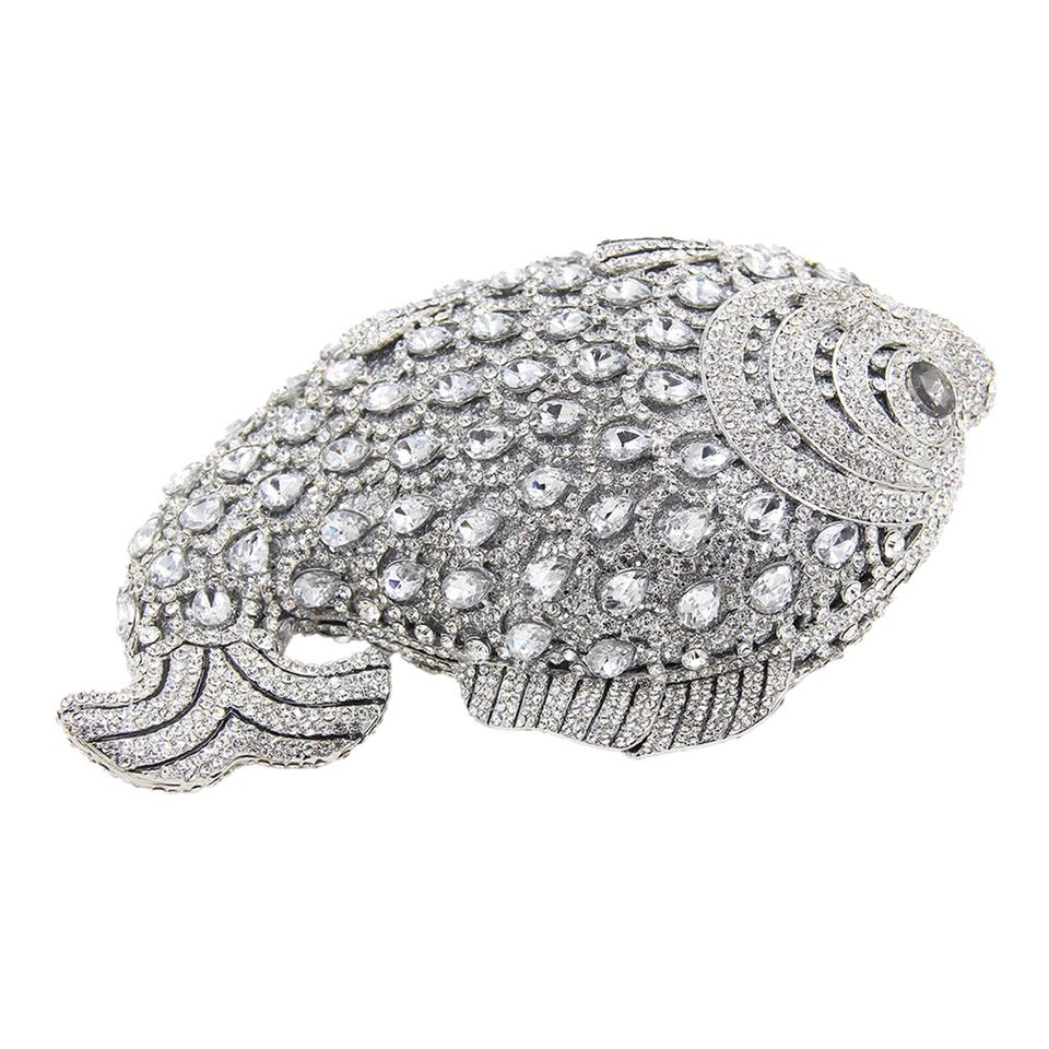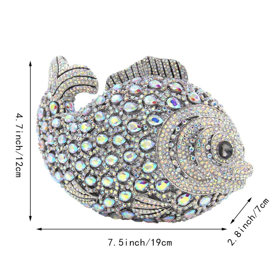 กระเป๋าคลัทช์คริสตัลรูปปลาสุดหรูสำหรับผู้หญิง ประดับด้วยเพชรพลอยพิเศษ เหมาะสำหรับออกงานกลางคืน สะพายไหล่ได้