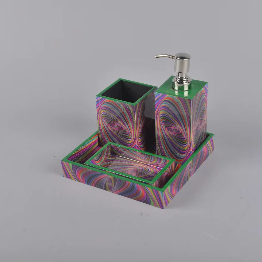 ชุดเครื่องจ่ายสบู่และโลชั่น3ชิ้นทำจากเรซินคริสตัลสุดหรู