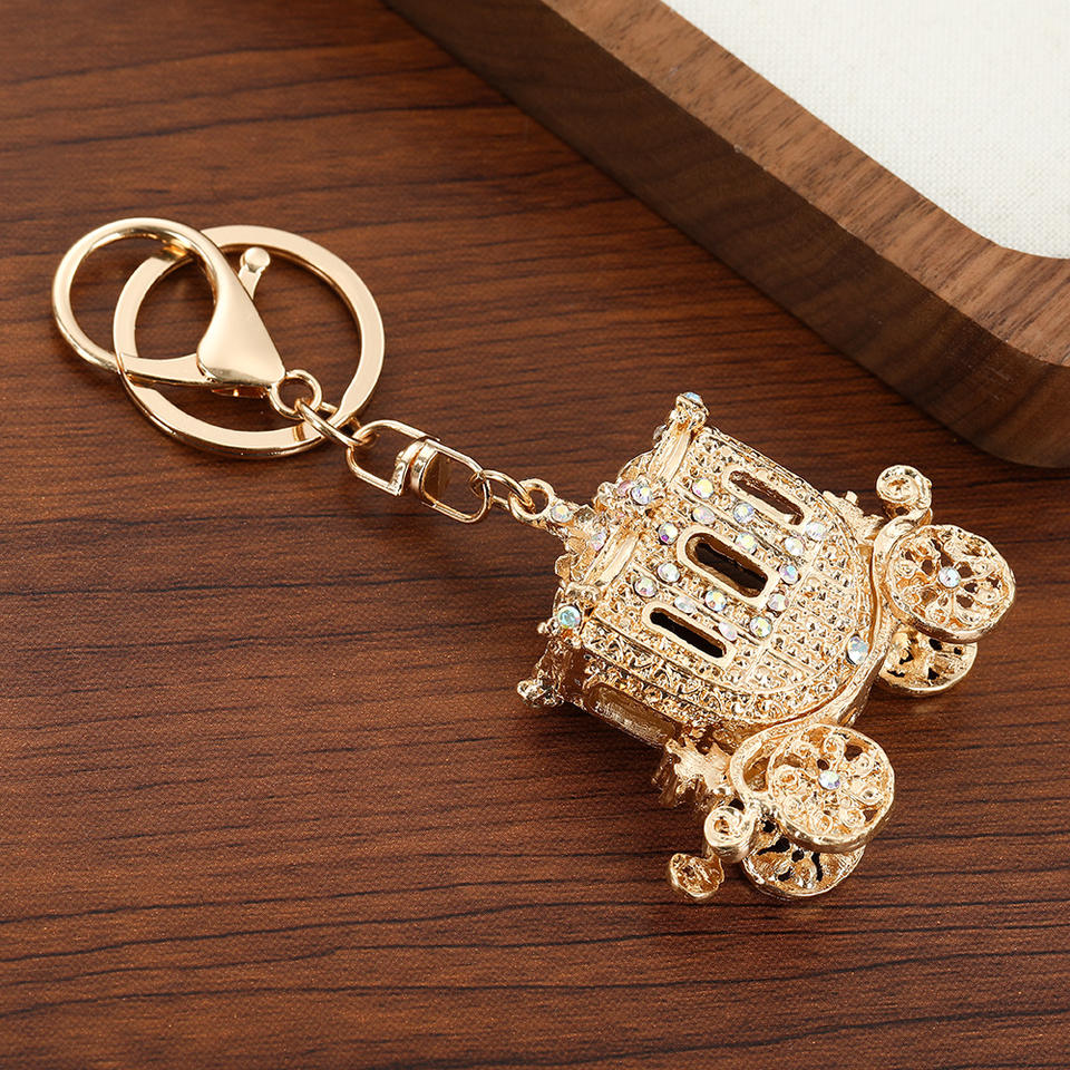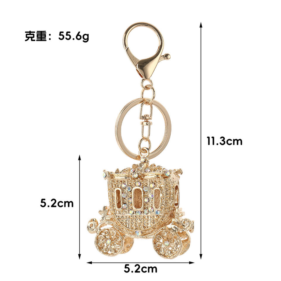 พวงกุญแจรถประดับคริสตัลหรูหรา | ดีไซน์รถเข็นฟักทองการ์ตูนน่ารัก | พวงกุญแจโลหะวินเทจ UV สำหรับอุปกรณ์ตกแต่งกระเป๋าในรถยนต์