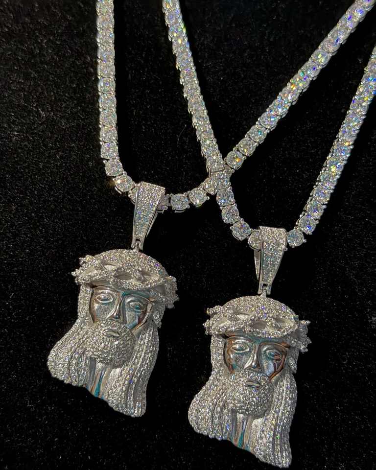 จี้ฮินดูทรงเจ้าหญิงชุบทองคำขาว 925 เงินแท้สั่งทำพิเศษ ประดับเพชรโมอิสซาไนต์ ดีไซน์ฮิปฮอป