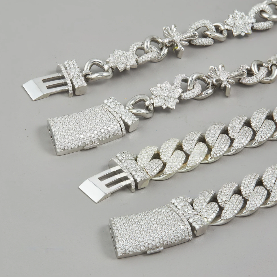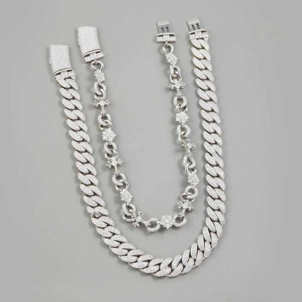 สร้อยคอง่ามเพชรมอยส์ซอไนต์925สเตอริงสีเงินออกแบบได้ตามต้องการสุดหรูพร้อมสายโซ่คิวบาทำจากสเตนเลสสตีลของขวัญฮิปฮอป