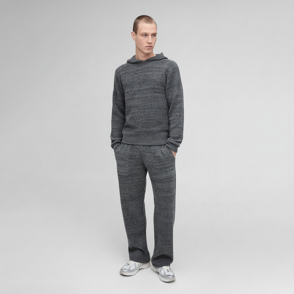 ชุดวอร์มโมแฮร์ดีไซน์สั่งทำสุดหรู เสื้อฮู้ดถักนุ่มสบายและกางเกงขายาวทรงกว้าง