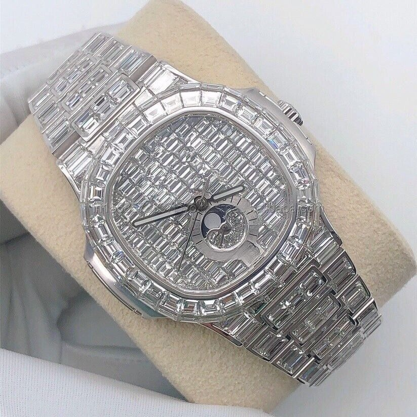 นาฬิกาดีไซน์หรูหราสั่งทำพิเศษ ทองคำเหลือง ประดับเพชรโมอิสซาไนต์ พรีเมียม ทรงบาแกตต์ สำหรับงานปาร์ตี้ แบรนด์เนม