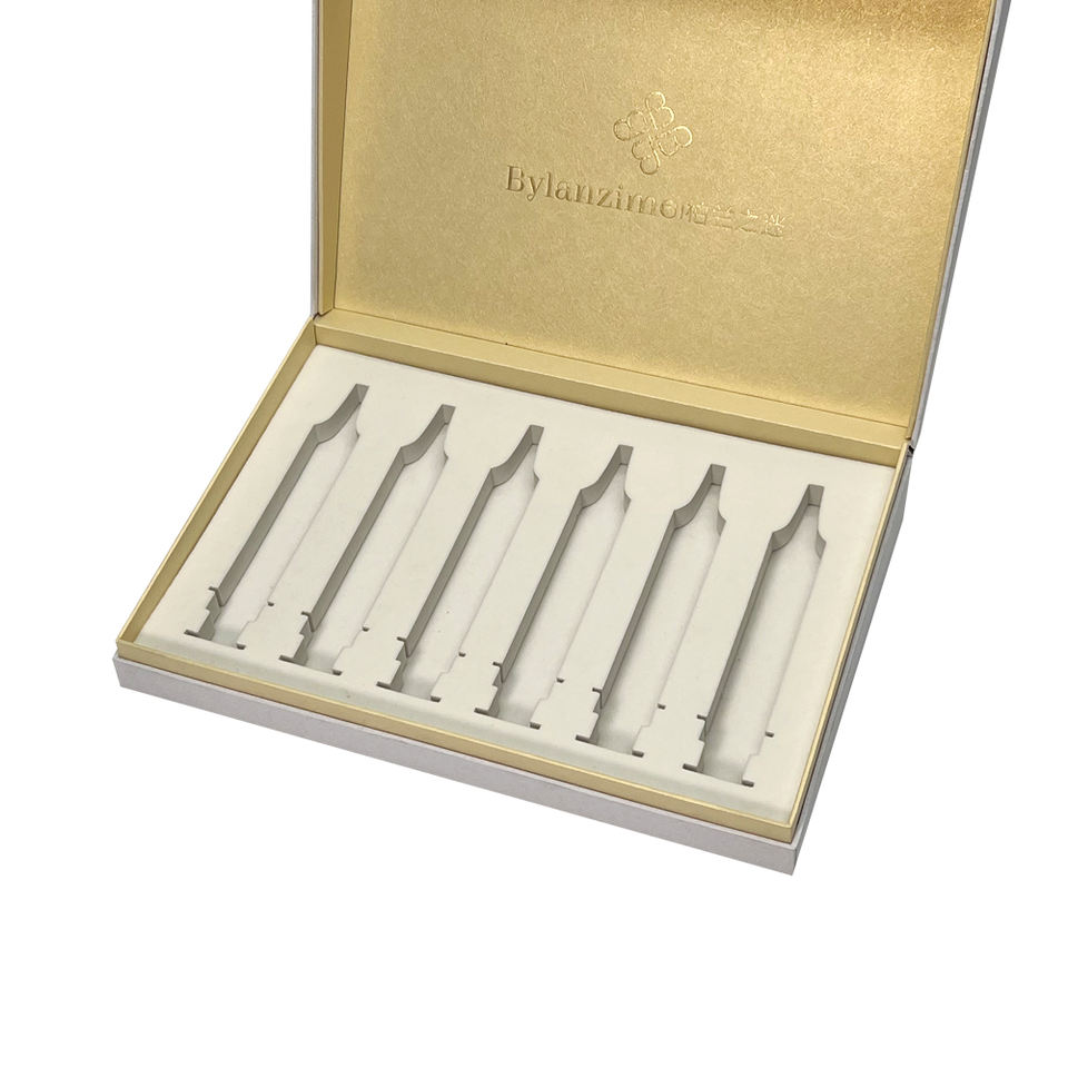 กล่องใส่น้ำมันหอมระเหยพร้อมโฟมด้านในกล่องฟอยล์สีทองขนาด30มล. ทำจากกระดาษแข็งแข็ง