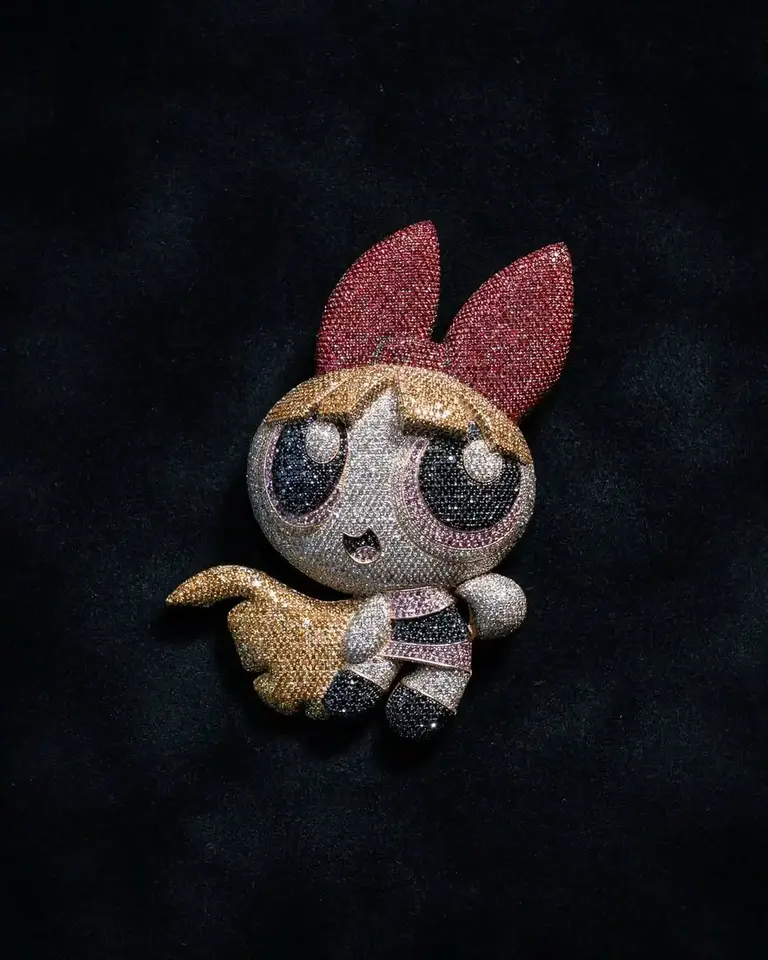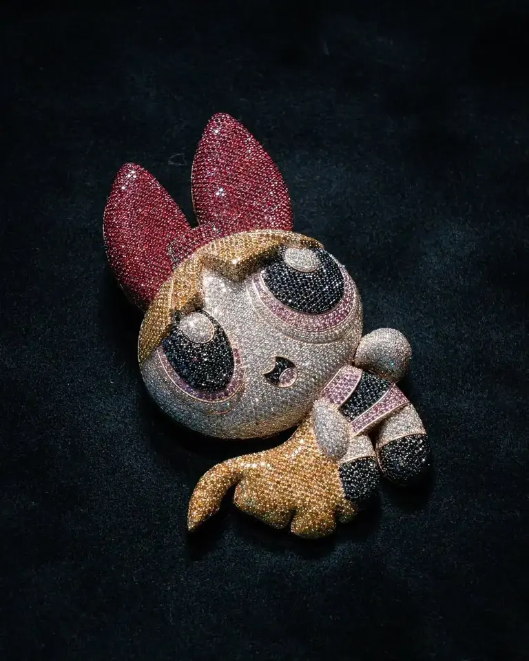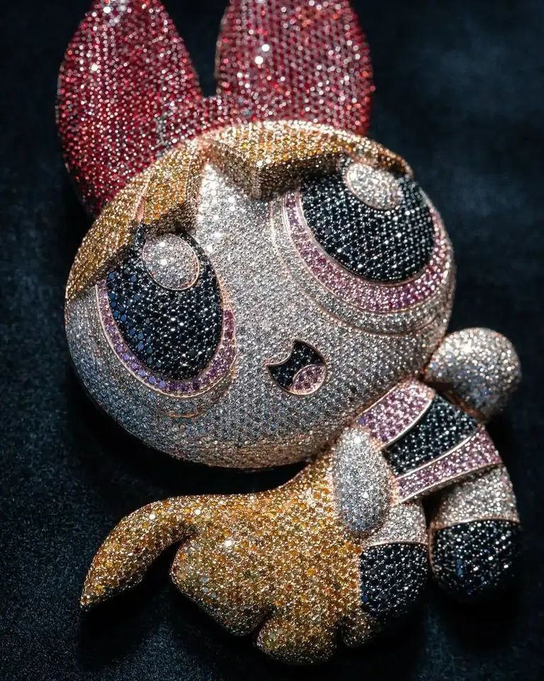 จี้เพชรโมอิสซาไนต์สี VVS ชุบโรเดียมสุดหรู ดีไซน์การ์ตูนฮิปฮอป สำหรับงานแต่งงานและเป็นของขวัญ