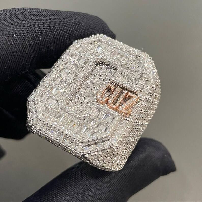 Luxury Custom Initial Moissanite Ring Iced Out Letter Design White Gold Finish Statement Hip Hop Jewelry Gift for Men