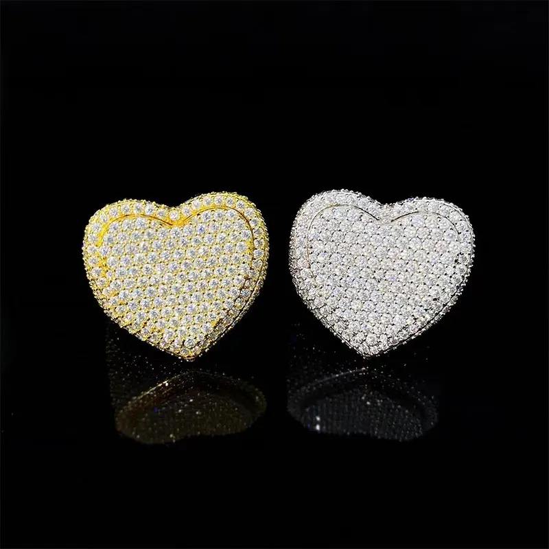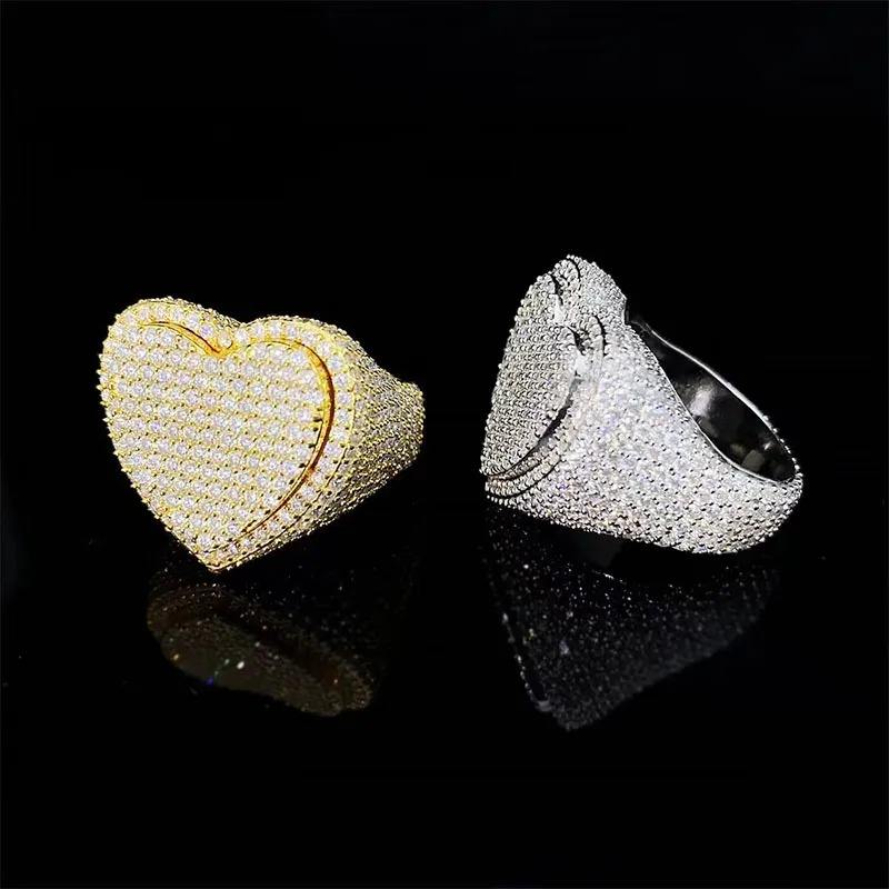 แหวนเพชรโมอิสสำหรับเป็นของขวัญงานหมั้นเครื่องประดับแบบกำหนดเองได้หรูหรารูปหัวใจฮิปฮอป