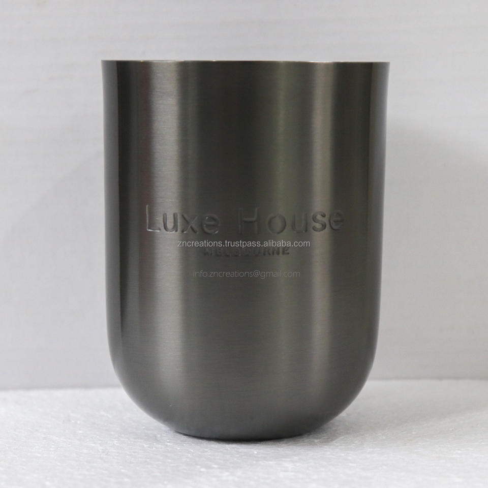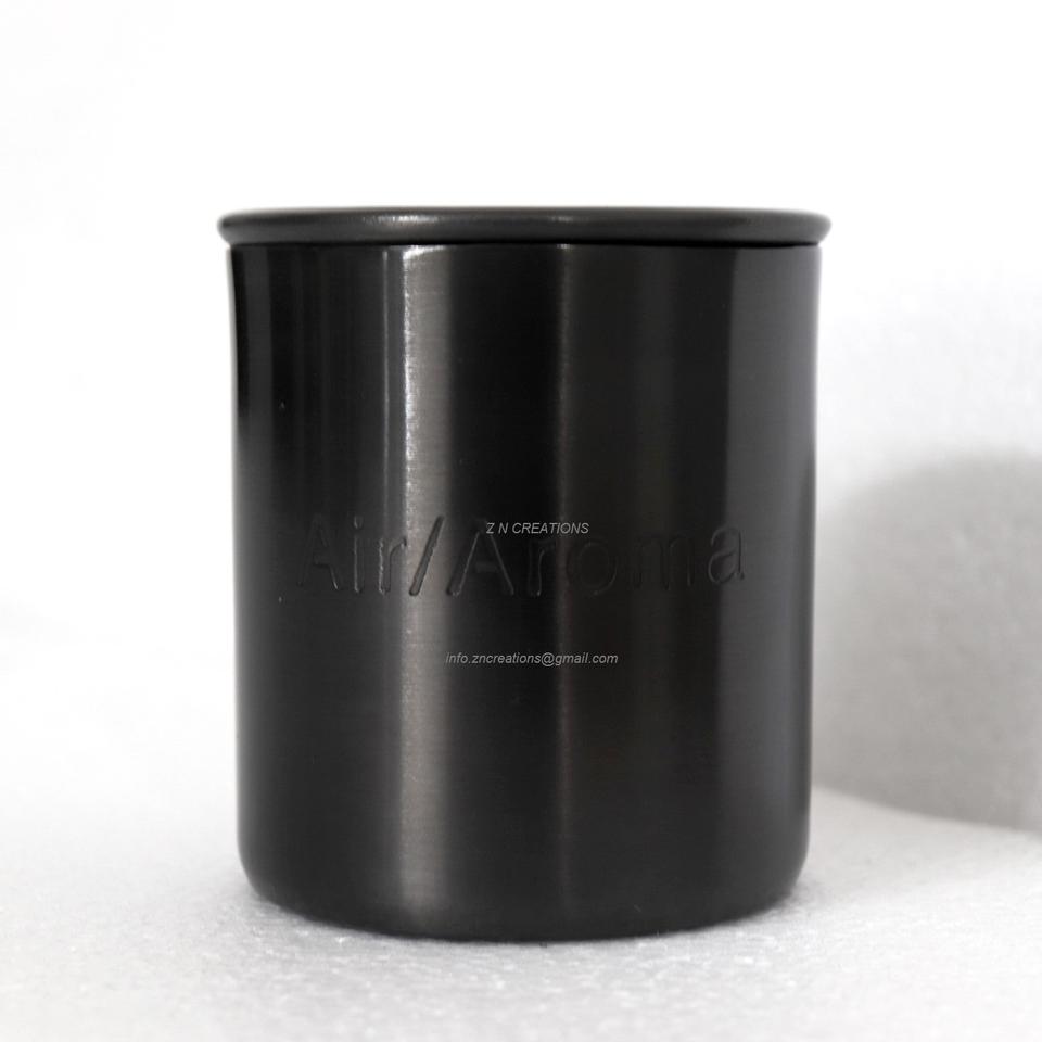 ขวดโหลโลหะสลักสำหรับทำเทียนหอมทำจากทองเหลืองเคลือบสีดำหรูหราโลโก้ตามสั่ง