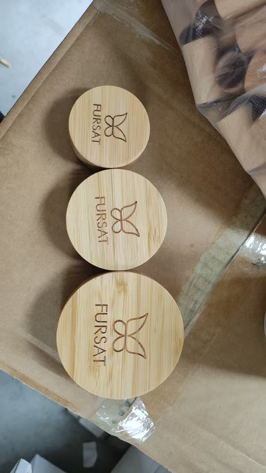 ขวดเครื่องสำอางแก้วฝ้าแบบหรูหราสั่งทำพิเศษ พร้อมฝาไม้และส่วนประกอบไม้ไผ่ รับสลักโลโก้