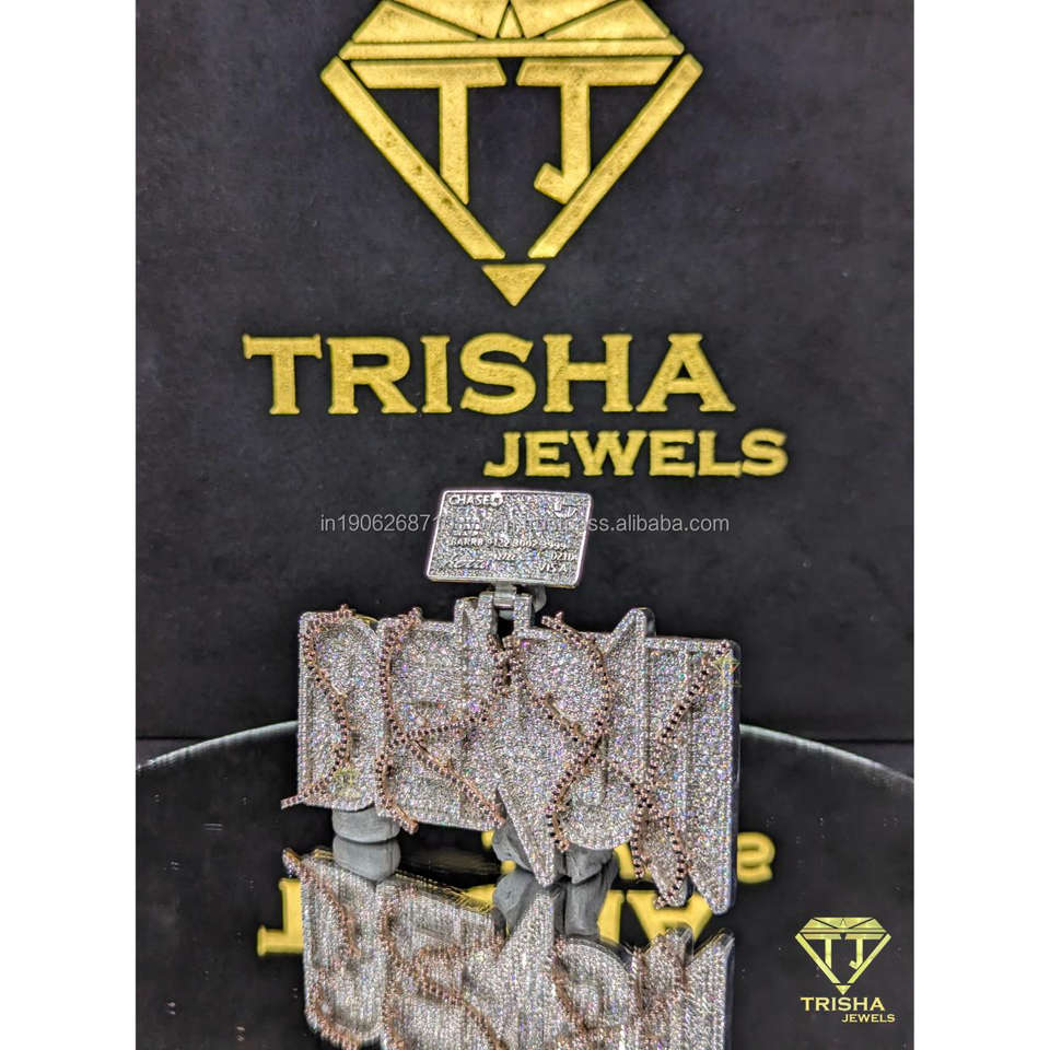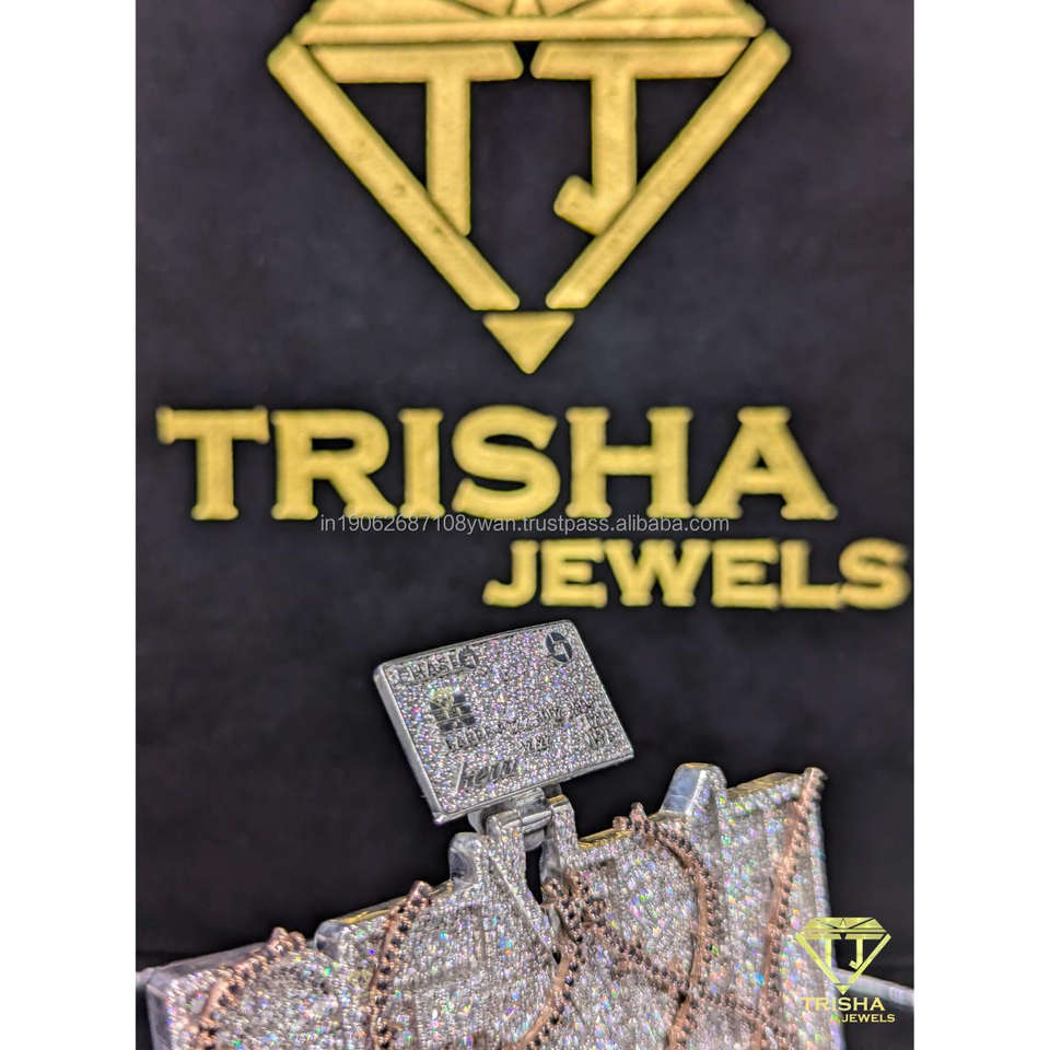 จี้เพชรโมอิสซาไนต์ VVS แบบสั่งทำพิเศษ ดีไซน์หรูหรา ประดับเพชรเต็มตัว บนตัวเรือนเงินแท้ 925 สไตล์ฮิปฮอป โดย Trisha Jewels