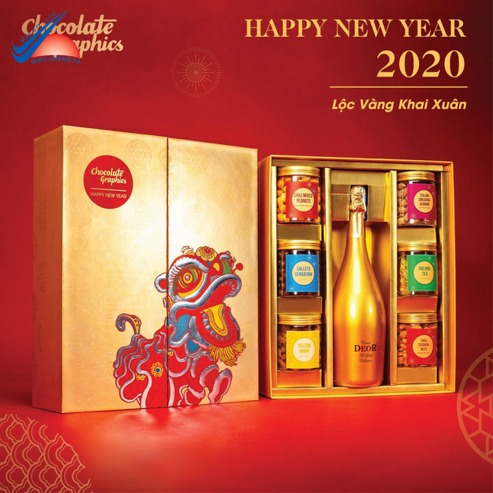การพิมพ์กล่องของขวัญปีใหม่ที่หรูหราด้วยแผ่นฟอยล์สีทองแบบกำหนดเอง