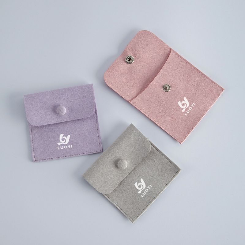 ถุงใส่เครื่องประดับสุดหรูสั่งทำพิเศษ ถุงผ้าไมโครไฟเบอร์สำหรับบรรจุภัณฑ์เครื่องประดับ ถุงใส่เครื่องประดับแบบกระดุม พร้อมโลโก้ปั๊มนูน