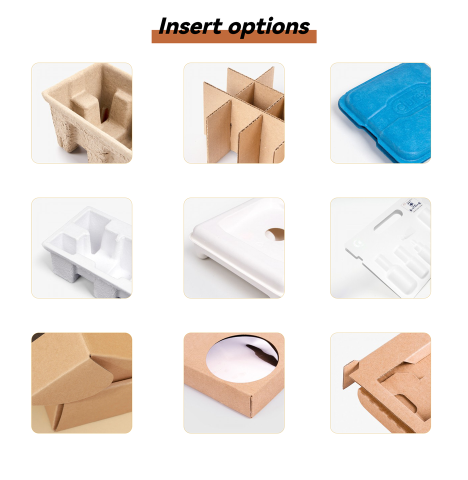 กระดาษแข็ง, อลูมิเนียมฟอยล์, คราฟท์ลูกฟูก, ผ้าฝ้าย, พลาสติก, ซาติน, ฟองน้ำ, Customประเภทซับ