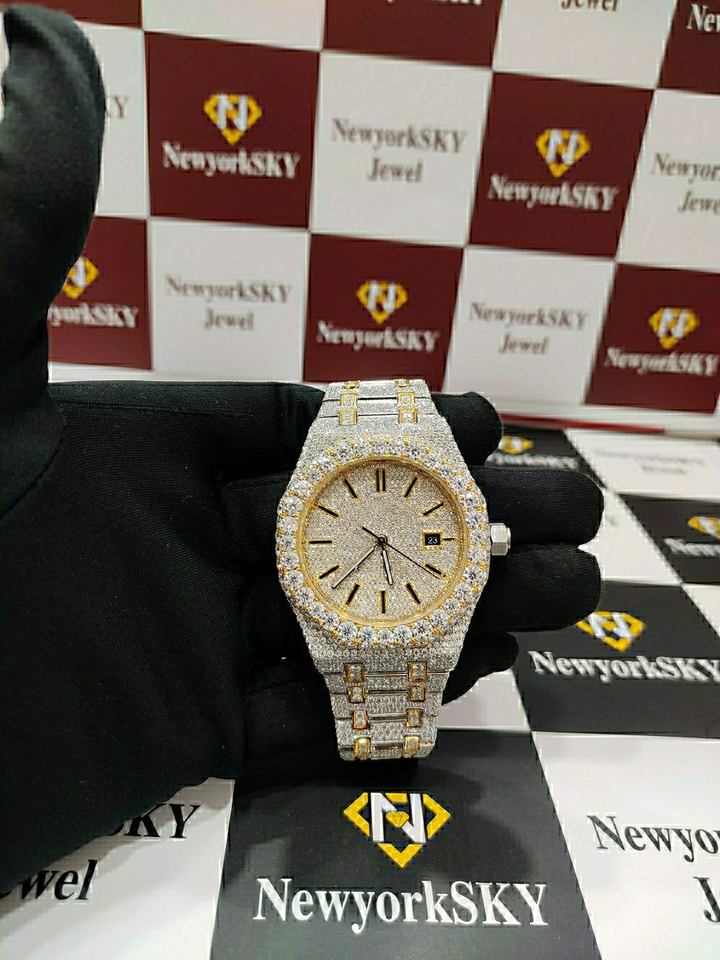 นาฬิกาข้อมือเพชรฮิปฮอป VVS Moissanite แบบกำหนดเองหรูหรานาฬิกากลไกสแตนเลส