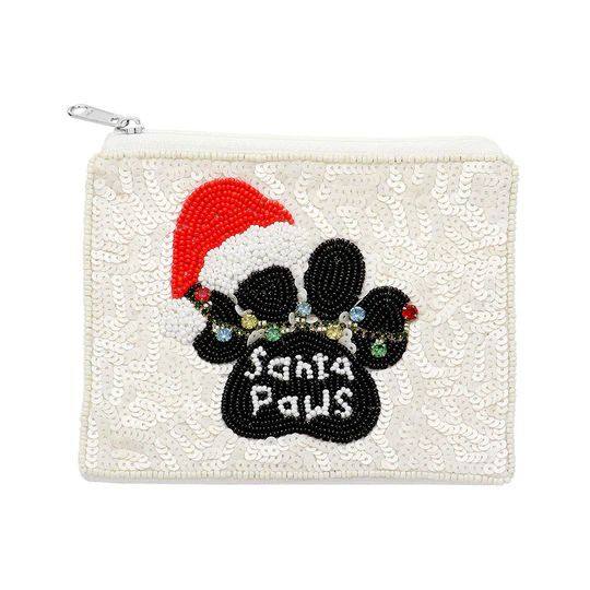 กระเป๋าใส่เหรียญลายอุ้งเท้าซานต้าปรับแต่งได้หรูหราปักด้วยมือด้วยเม็ดลูกปัดปักครอสติชสีขาว/ส้ม/ดำ