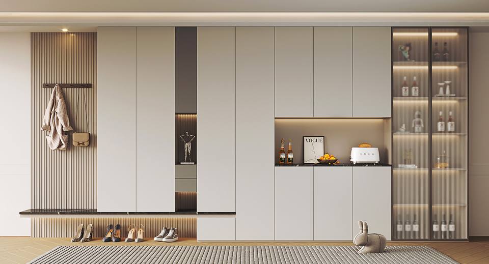 ตู้เก็บไวน์ไม้เนื้อแข็งสีแดงทันสมัยประหยัดพื้นที่ปรับแต่งได้หรูหรา