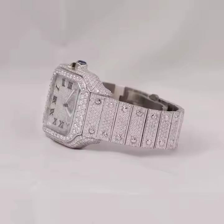 นาฬิกาฮิปฮอปหรูหราสั่งทำพิเศษ ประดับเพชรโมอิสซาไนต์สำหรับผู้ชาย พร้อมหน้าปัดแบบกำหนดเองและดีไซน์เฉพาะตัวจากอินเดีย