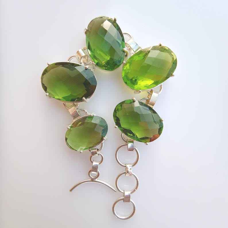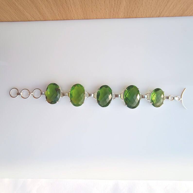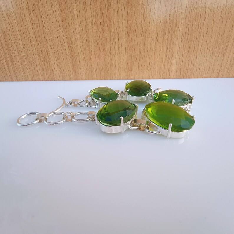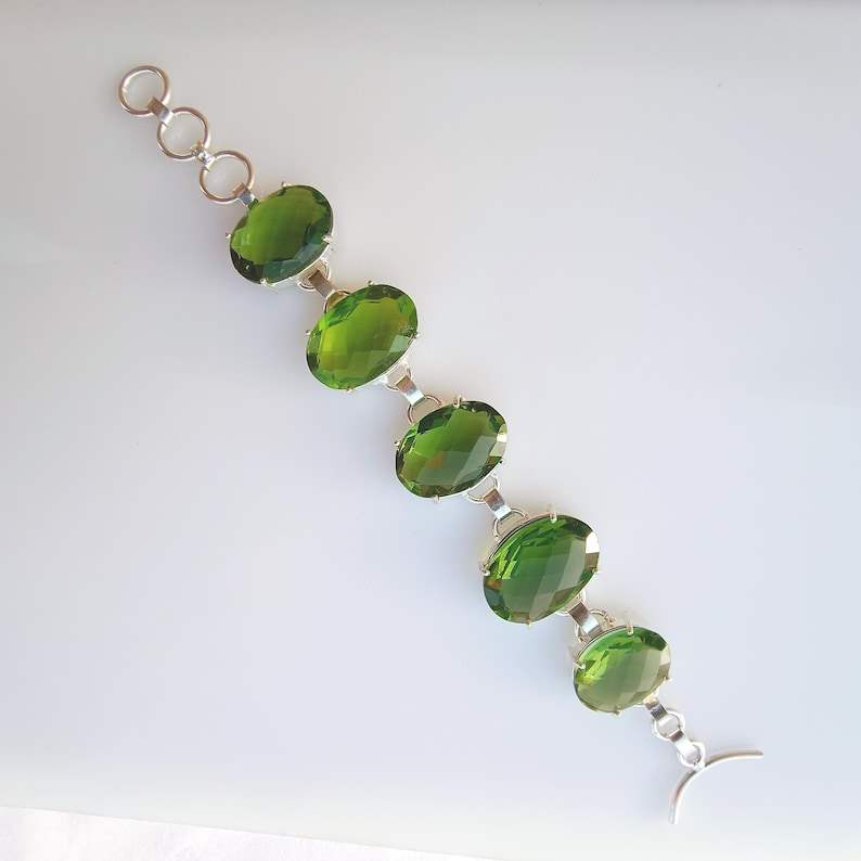 สร้อยข้อมือเพอริดอทสีเขียวดีไซน์หรูหรา