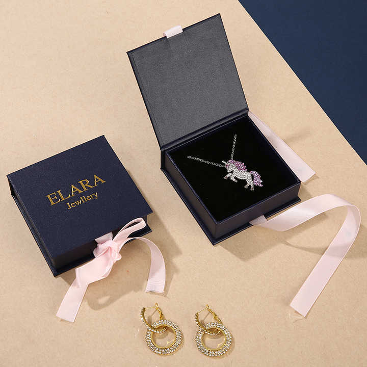 Luxury Customized Jewellery Packaging Gift Box Satin & Sponge Insert Box Book Shape Magnetic Flip Cover Jewelry Box With Ribbons
