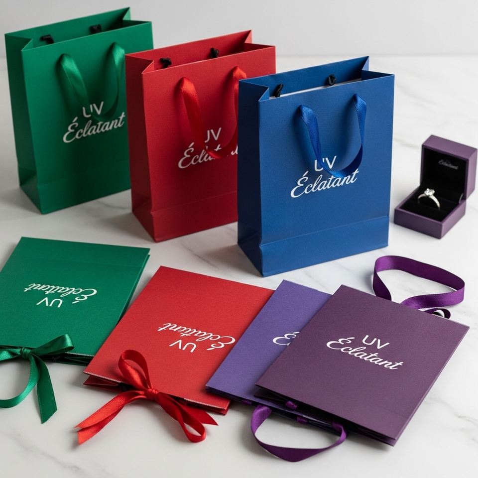 Luxury Customized Jewelry Paper Bags with UV Logo Printing Recyclable & Biodegradable for Eco-Friendly Gift Packaging Decoration