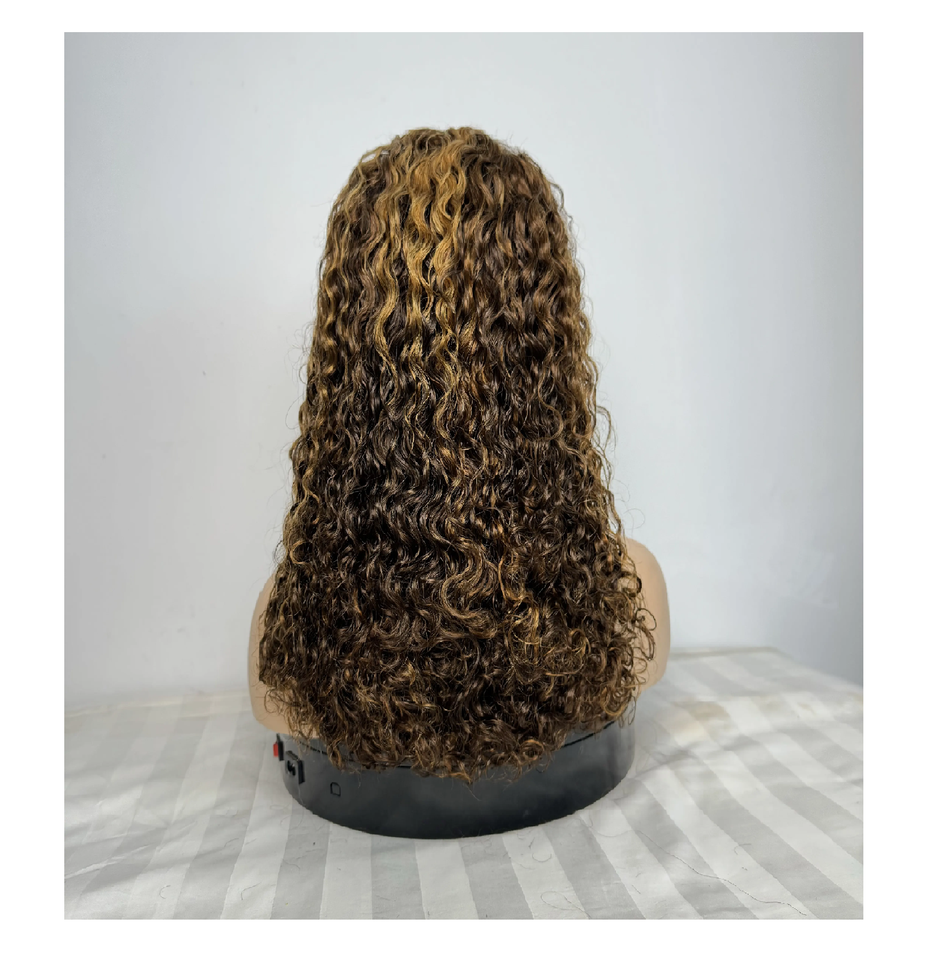 วิกผมชาวบราซิลแท้แบบลอนแท้สีน้ำตาลอ่อนแบบปรับแต่งได้
