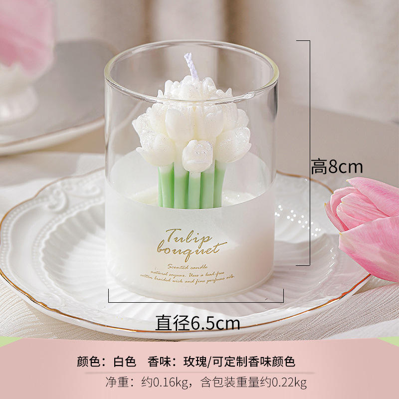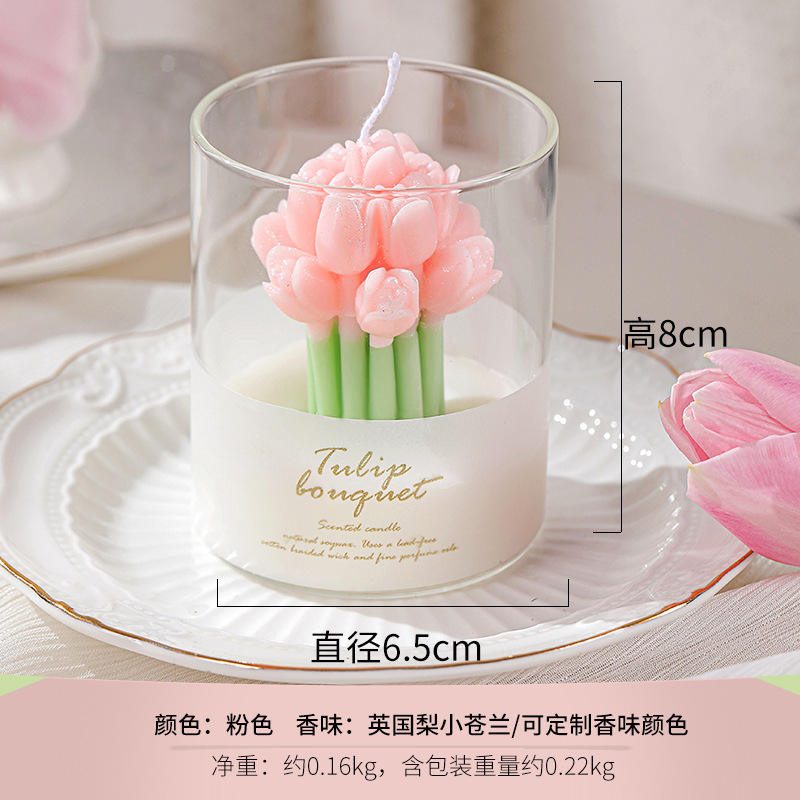เทียนหอมกลิ่นทิวลิปในขวดแก้วทำมือ พร้อมโลโก้สั่งทำพิเศษ ของขวัญสุดหรูสำหรับวันแม่ วันวาเลนไทน์ ของขวัญสุดโรแมนติก เป็นมิตรกับสิ่งแวดล้อม ทำจากขี้ผึ้งถั่วเหลือง