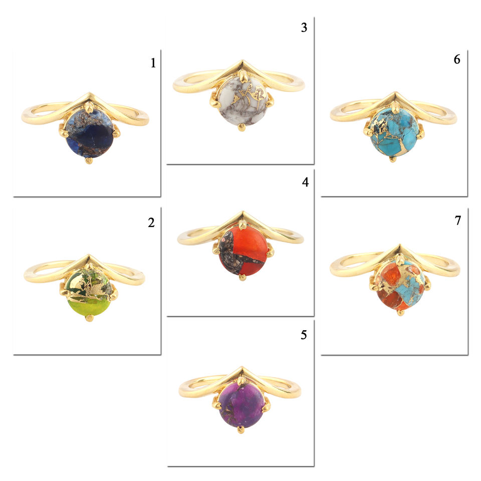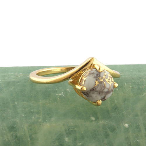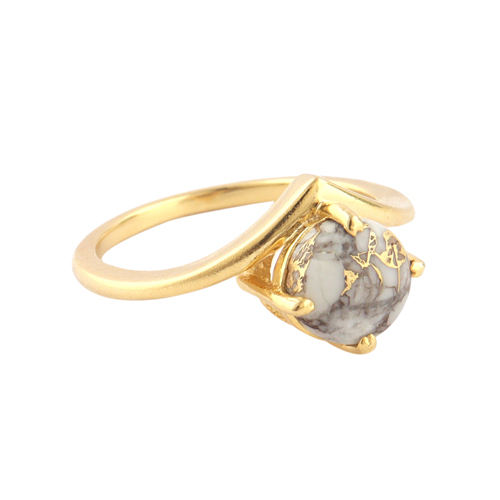 แหวนงานฝีมือทำจากทองแดง Howlite,แหวนซ้อนกันได้24K ชุบทองรูปทรงกลมหรูหราแหวนซ้อนกันได้8US