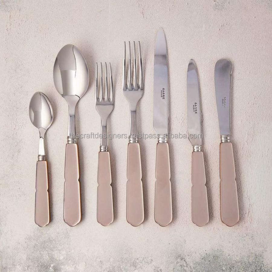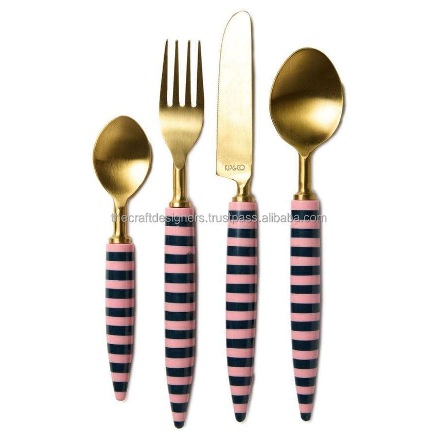ชุดช้อนส้อมหรูหรา ดีไซน์พิเศษ ด้ามจับเรซิ่น ชุดเครื่องเงินสีทอง-เงิน สำหรับงานแต่งงาน อุปกรณ์ตกแต่งโต๊ะอาหาร