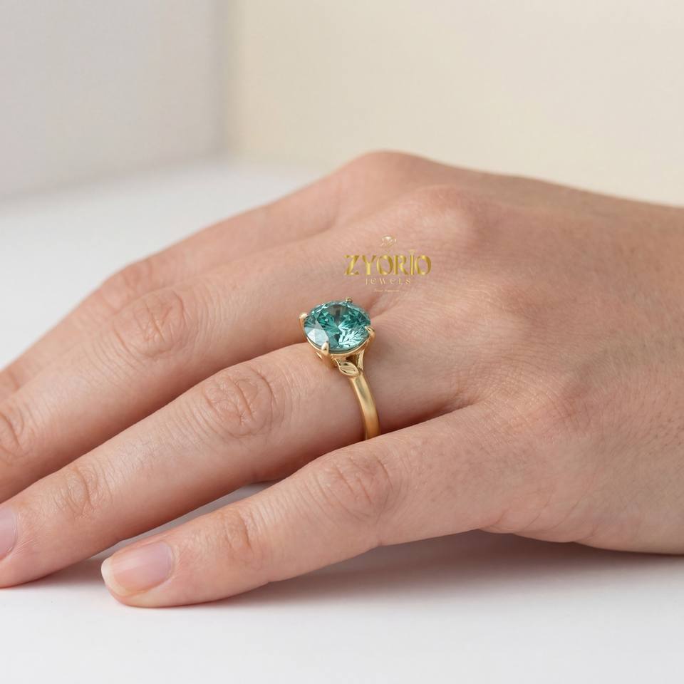 เพชรคัตต์โปรตุเกสสีฟ้าซีแยนสุดหรู ผลิตในห้องปฏิบัติการ ตัวเรือนทองคำแท้ 14K สำหรับผู้หญิง เหมาะสำหรับงานแต่งงาน งานหมั้น งานเลี้ยง และเป็นของขวัญ