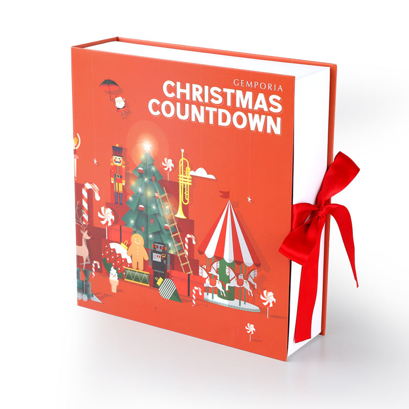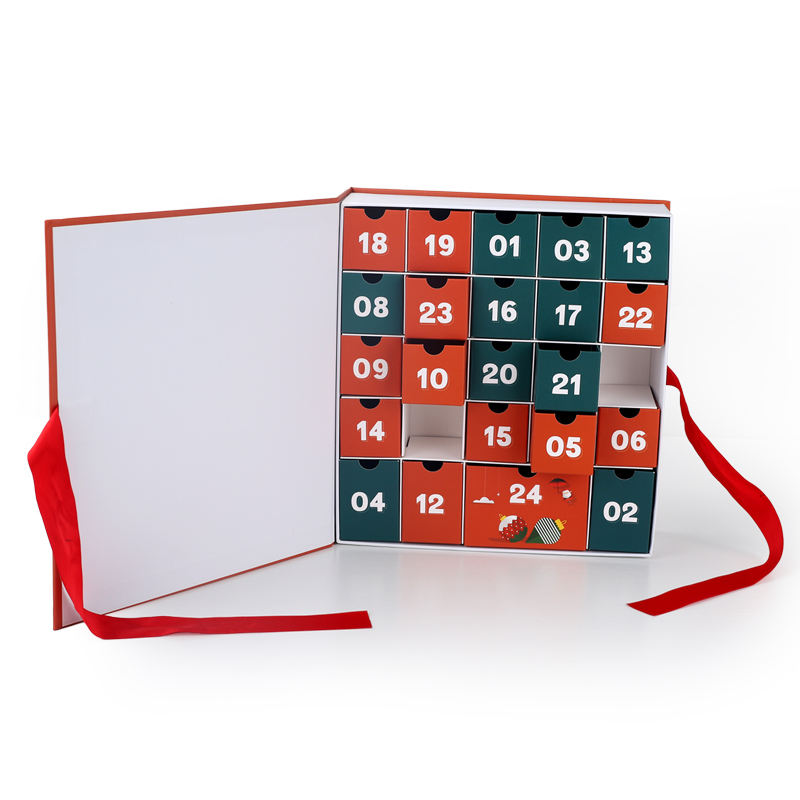 ของเล่นปฏิทินสีแดงส่วนบุคคล DIY,กล่องของขวัญกระดาษช็อคโกแลตอาหารคริสมาสต์25ลิ้นชัก Advent Calender เด็กที่มีโลโก้