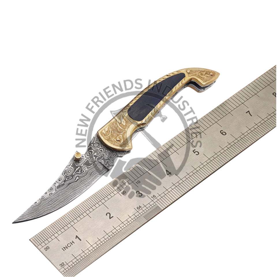 Luxury DIY Damascus Steel Folding Knife Beautiful Pattern Handle OEM Customizable Lightweight Pocket Friendly Hunting Outdoor