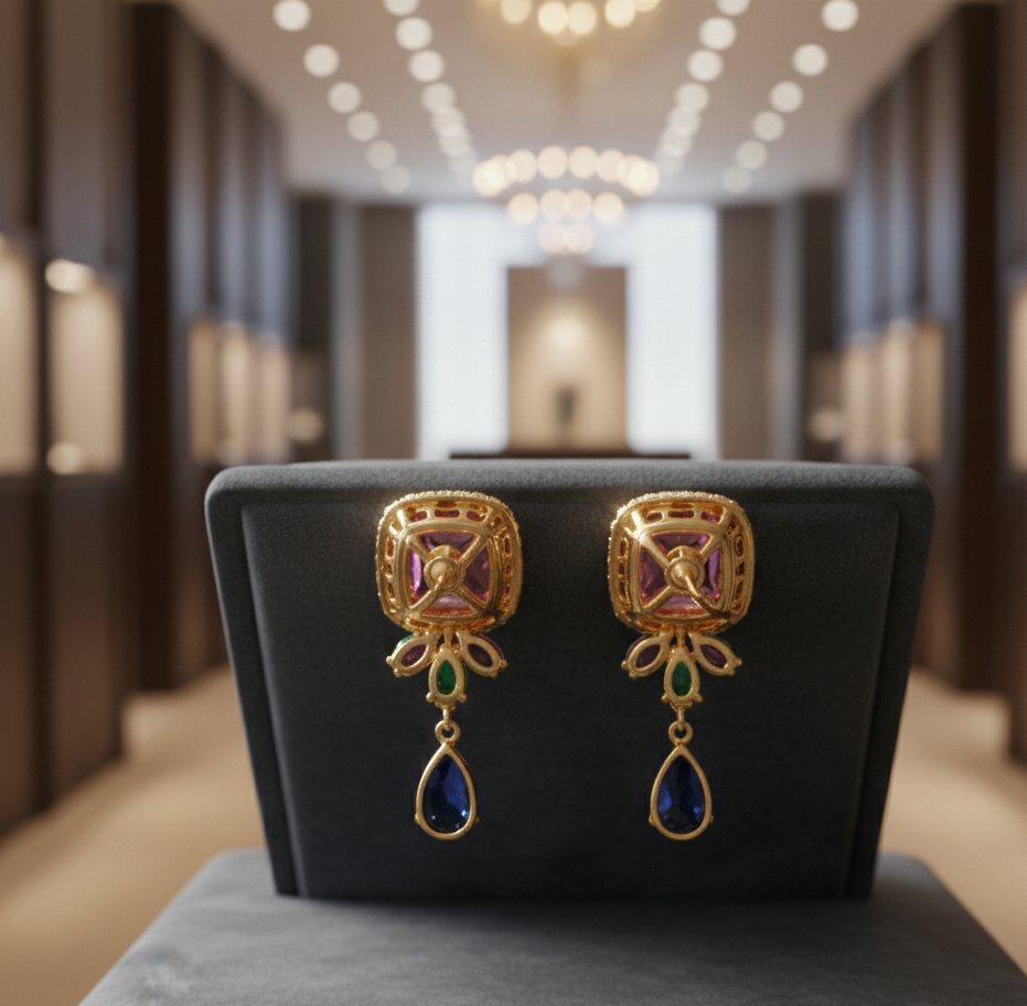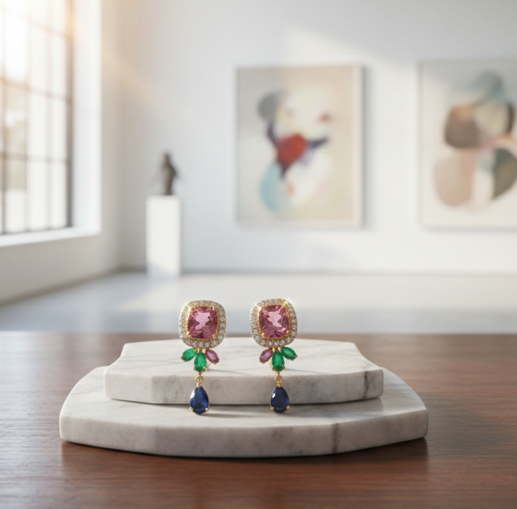ต่างหูห้อยระย้าหรูหราสำหรับผู้หญิง พลอยสีชมพู ฟ้า เขียวไฮโดร เงินแท้ 925 ชุบทอง 18K ราคาขายส่ง
