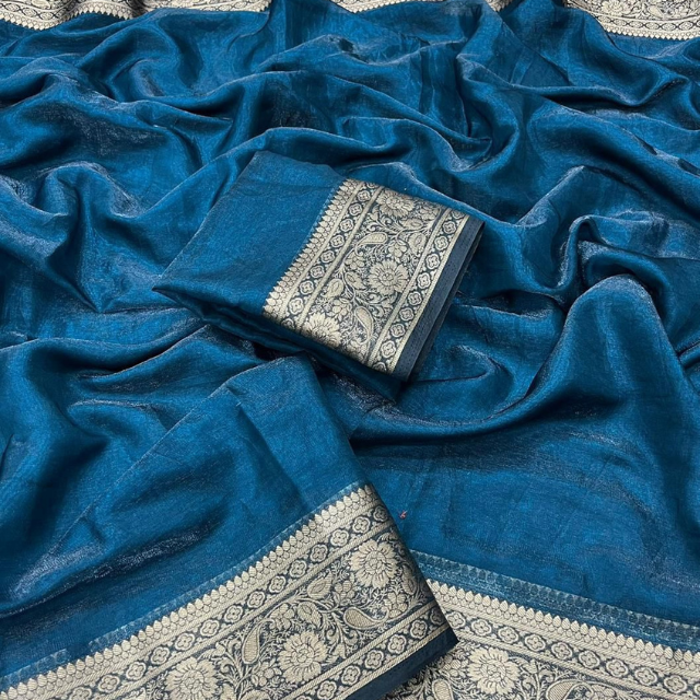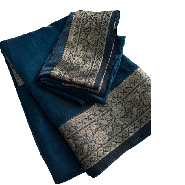 ผ้าซิลค์สีน้ำเงินเข้มสุดหรู พร้อมลายปักแจ็คการ์ดซารีแบบละเอียดอ่อน – ผู้จัดจำหน่ายขายส่ง