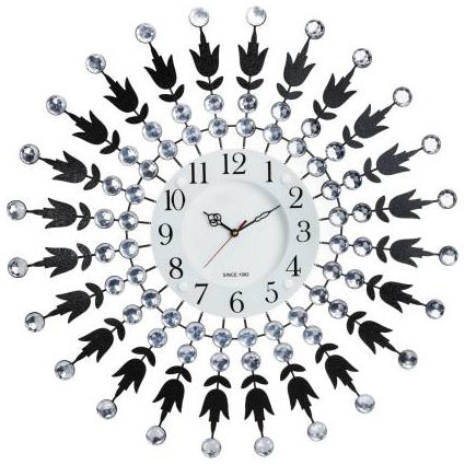 นาฬิกาแขวนผนังโลหะแบบทันสมัยสีดำและใสประดับมุกนาฬิกาแขวนผนังที่มีดาวนาฬิกาติดผนัง