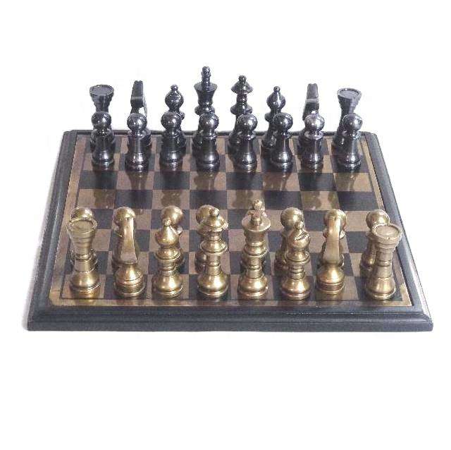 ชุดหมากรุกโลหะตกแต่งหรูหรา พร้อมตัวหมากรุกประดับตกแต่งสำหรับจัดวางบนโต๊ะอย่างมีสไตล์