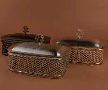 ชุดกล่องขนมตกแต่งหรูหรา ฝาปิดโลหะสีเงิน กระปุกเก็บของบนโต๊ะ ภาชนะใส่ขนม จัดระเบียบขนม ของตกแต่งบ้าน ดีไซน์คลาสสิก