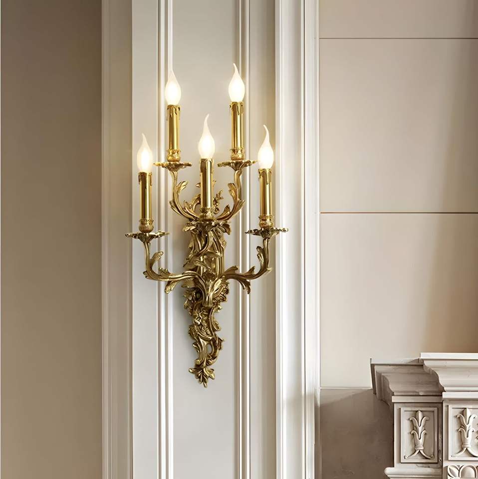 โคมไฟติดผนังทองเหลืองตกแต่งหรูหรา สไตล์วินเทจบาโรก สำหรับตกแต่งภายในพระราชวัง วิลล่า โรงแรม บ้านพักอาศัย ให้บรรยากาศคลาสสิก